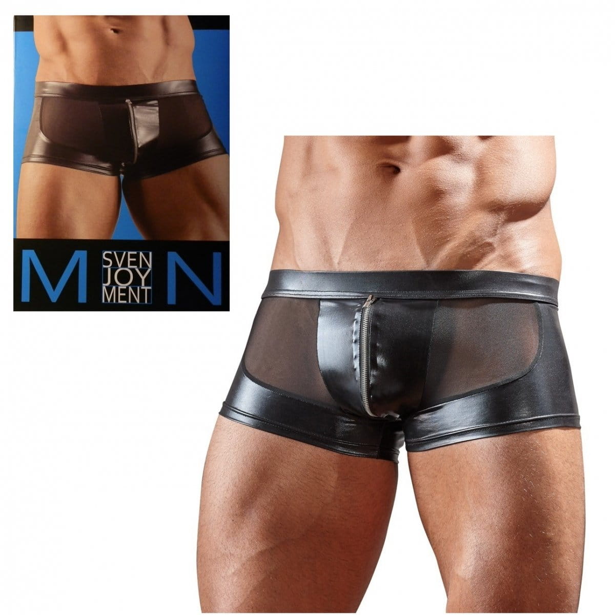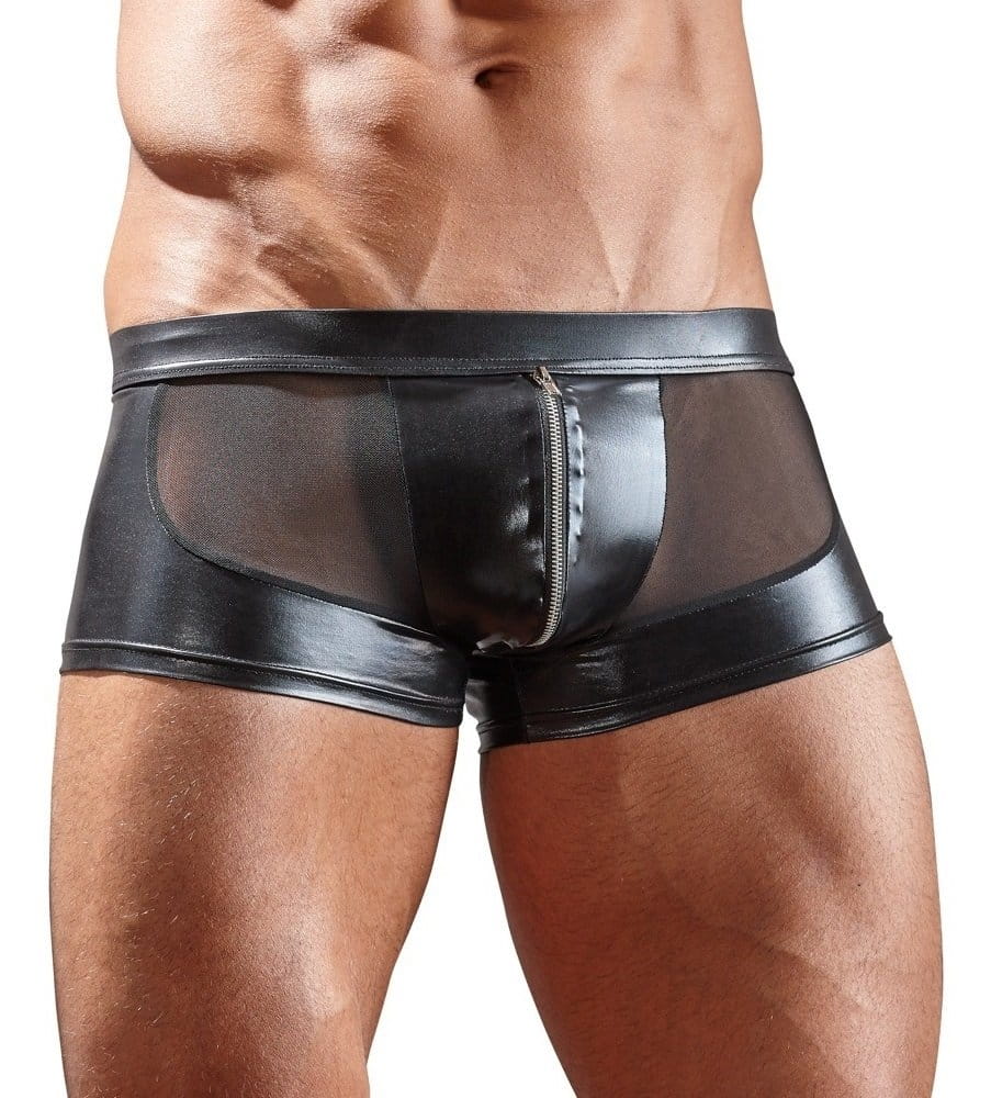 Bokserki Svenjoyment z przejrzystym tyłem i zamkiem na genitaliach świetnie sprawdzą się w czasie rozbieranej randki.