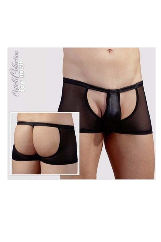 Majtki wykonane są z miłej delikatnej siateczki (75% polyamid, 10% polyester, 15% elastan). Wyprodukowane przez Cottelli Collection stringo-bokserki w rozmiarze M mają gumkę w pasie dzięki czemu obwód wynosi od 70 cm do 80 cm. Długość nogawki 20cm. Bokserki Stringpants Cottelli Collection świetnie sprawdzą się w czasie rozbieranej randki.