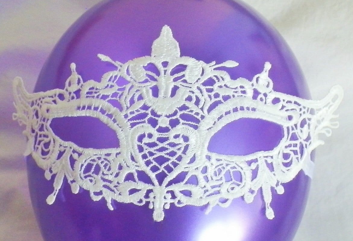Biała koronkowa opaska na oczy uwodzicielska maska dla zmysłowej kobiety.