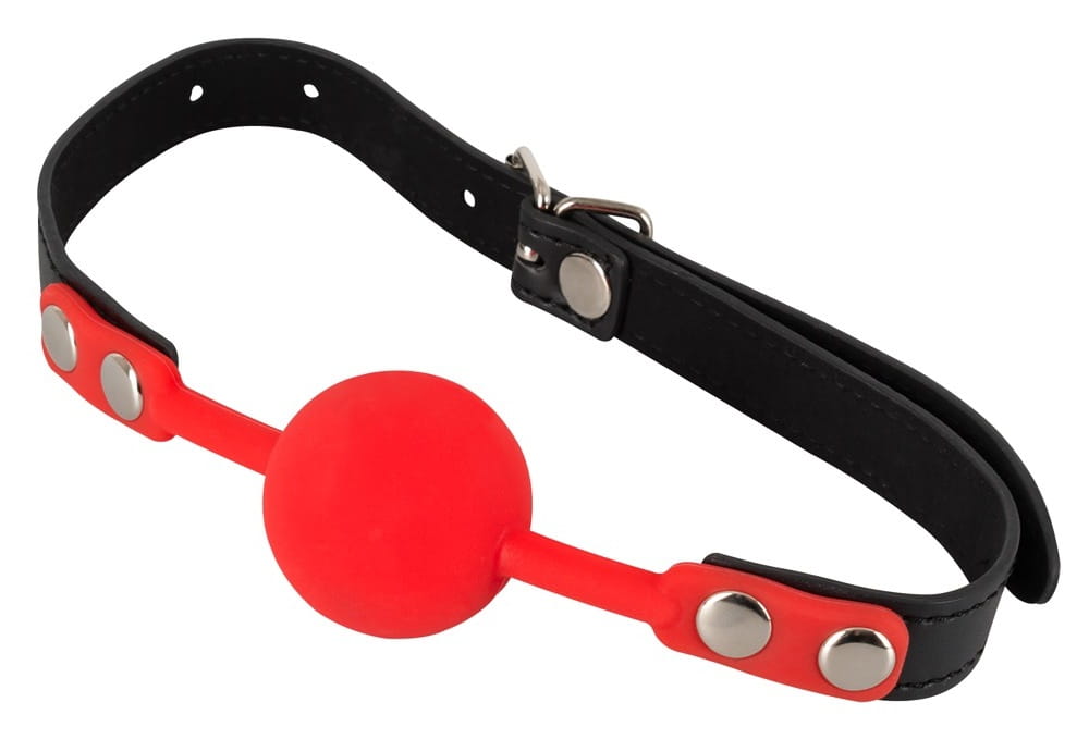 Czerwona kulka o średnicy 4 cm wykonana jest z przyjemnego w dotyku, higienicznego silikonu, który doskonale dopasowuje się do ust, zapewniając komfort i bezpieczeństwo podczas noszenia.