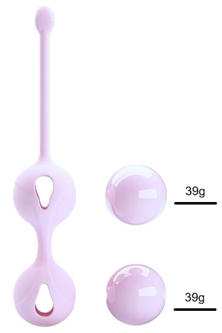 Wewnątrz silikonowych otoczek znajdują się różowe kulki z twardego materiału ABS o wadze 39g każda.