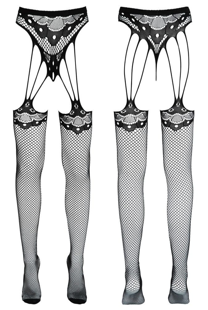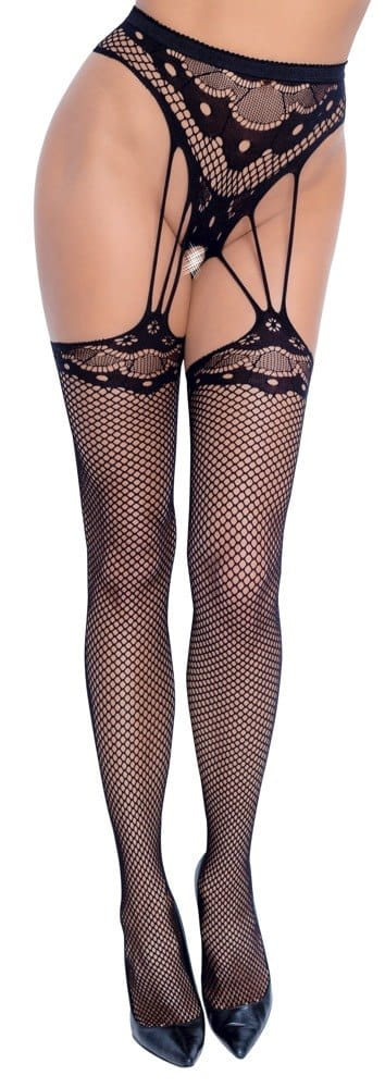 Ten wyjątkowy model to połączenie eleganckiej siateczki z efektownymi wycięciami i wzorami, które tworzą iluzję pasa do pończoch ze stringami.