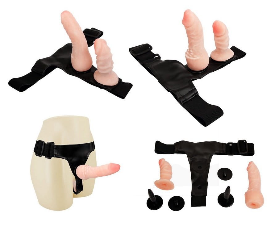 Dwa realistyczne penisy wykonane z miękkiej, elastycznej cyberskóry wiernie odwzorowują naturalne kształty i fakturę ciała. Ich delikatna, przyjemna w dotyku powierzchnia zapewnia niezwykle realistyczne wrażenia podczas penetracji. Mniejszy penis umieszczony wewnątrz uprzęży stymuluje użytkowniczkę, natomiast większy, zamocowany na zewnątrz, przeznaczony jest do zaspokojenia partnerki lub partnera.