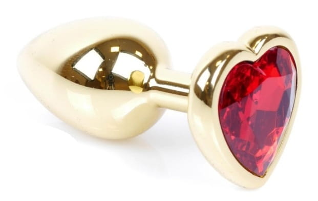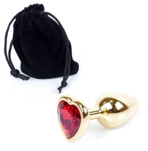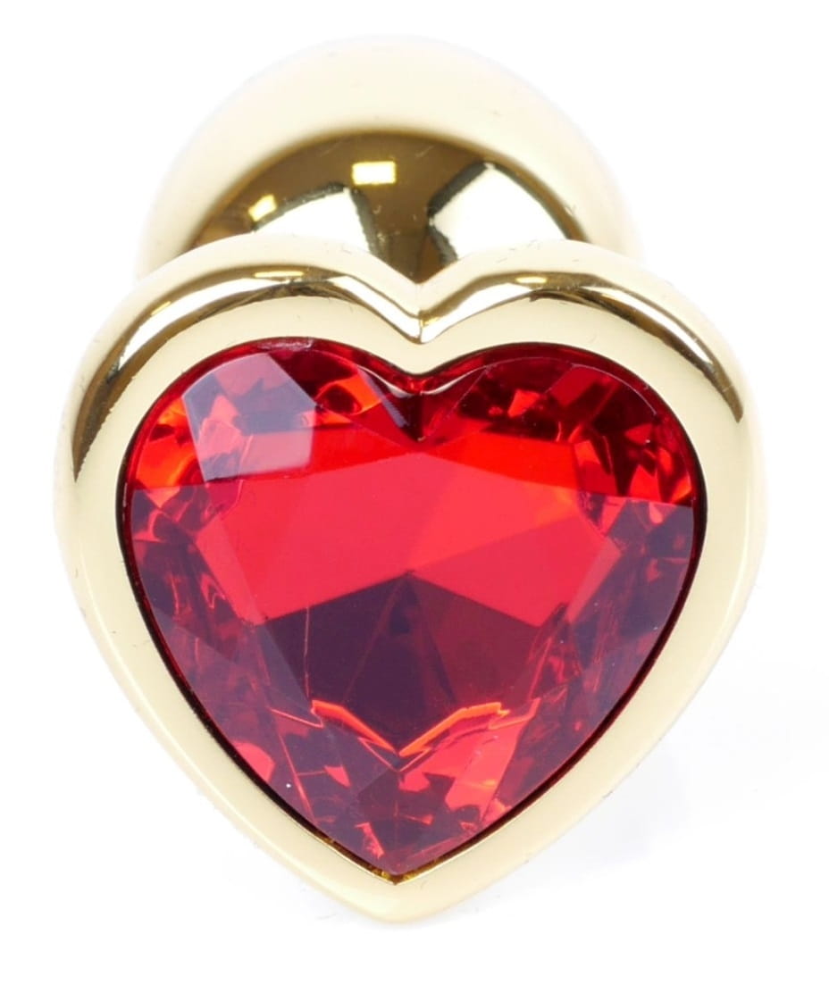 Metal Gold klasyczna mała wtyczka analna z czerwonym kryształkiem serce