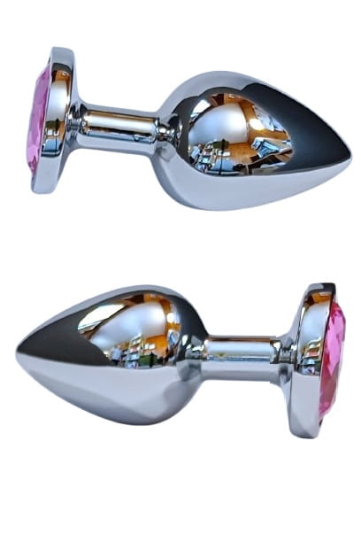 Metal Silver klasyczna duża wtyczka analna z różowym kryształkiem