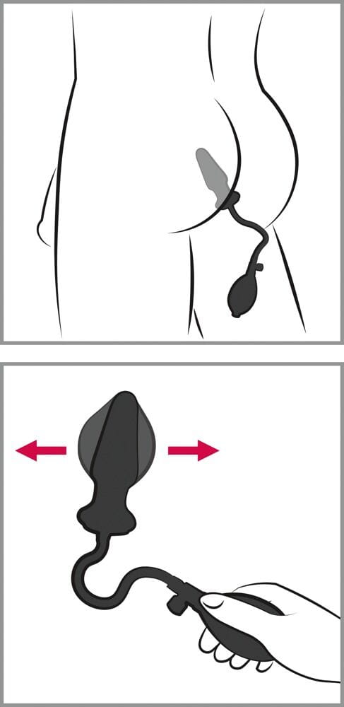 Stożkowy kształt wtyczki ułatwia aplikację, a możliwość stopniowego pompowania pozwala indywidualnie regulować rozmiar i nacisk. Korek działa na zasadzie balona analnego po umieszczeniu wtyczki w ciele można ją wygodnie napompować za pomocą poręcznej pompki wyposażonej w zawór zwrotny, który zapobiega samoczynnemu uchodzeniu powietrza.
